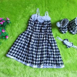 Deskripsi Produk baju pesta bayi set dress bayi,sepatu boots prewalker,bandana cantik monokrom hits kekinia bahan adem