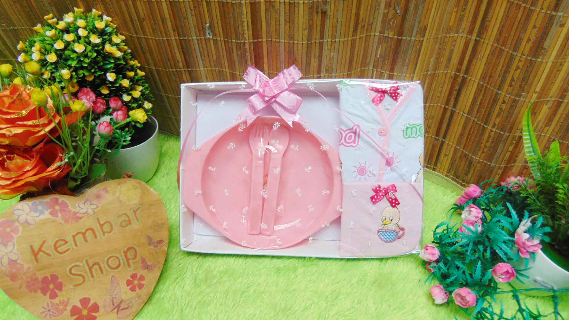 Deskripsi Produk Hadiah kado bayi murmer baby gift box feeding set plus setelan kaos bayi pink